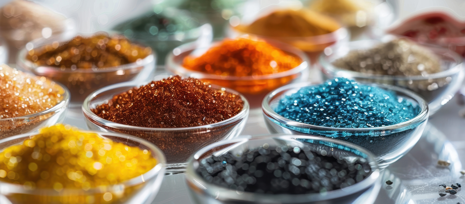 While REE are silvery-white as an ore, when refined into oxide (REO) they take on a range of pastel colours from aqua, blue, lavender, lime-green, white, yellow and pink. This is because ‘… each lanthanide ion, with its unique electronic configuration, will have different excited states and different excitation energies. Therefore, their absorption spectra differ and they display different colours.’1 Some REE have a biological role and all of them have low or no toxicity. Only Scandium has some level of toxicity.